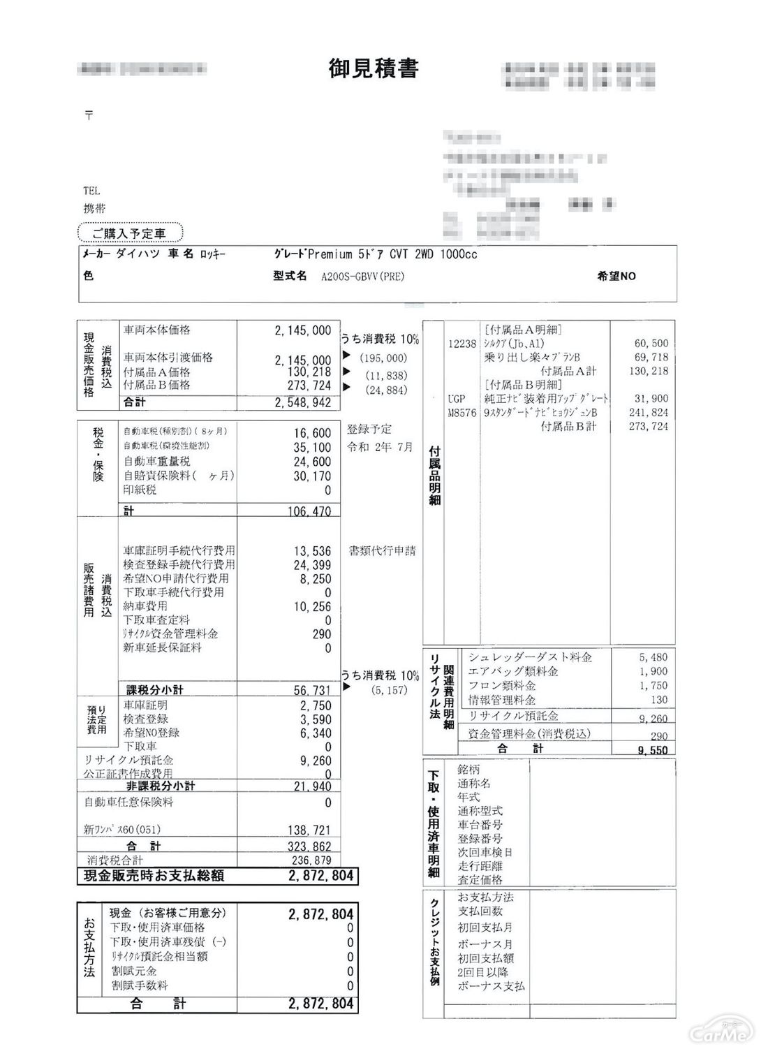 ダイハツ ロッキー 00s 210s型 は支払い総額287万2804円 実際に見積もりを取ってみた の写真 6枚目